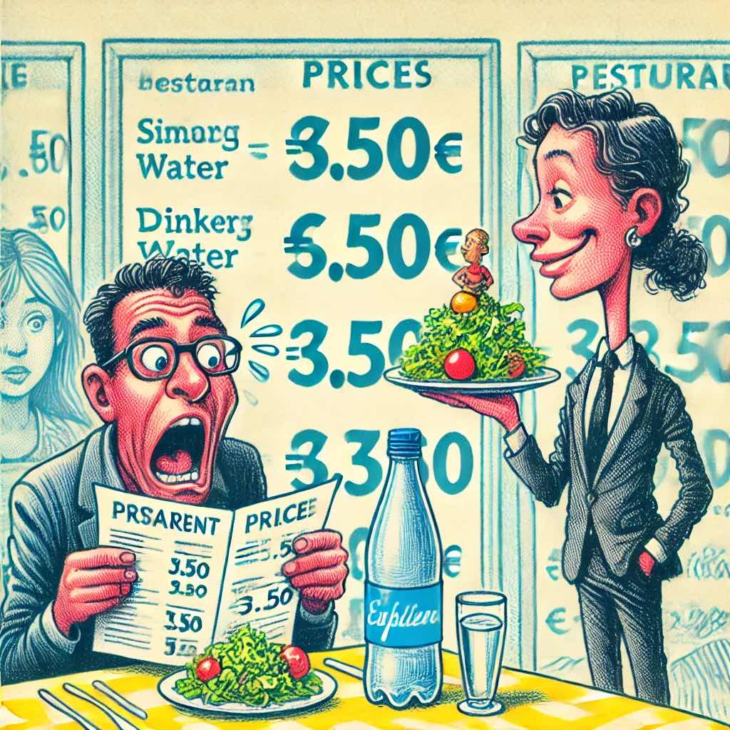 3,50 Euro für stilles Wasser. Ja, genau, das gute alte H2O. Und du fragst dich: „Kommt das aus einer magischen Quelle direkt in den Alpen?“
